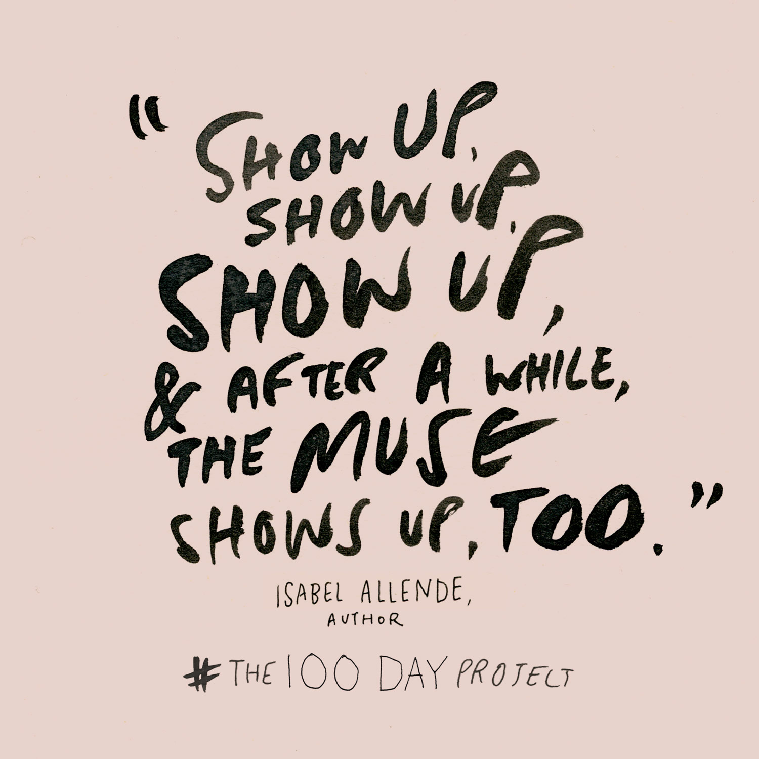 The 100 Day Project is co-hosted by online magazine The Great Discontent and artist Elle Luna. The idea of this project initiated from a grad school assignment at Yale School of Art where the teacher asked each student to pick on creative action and repeat it over the course of 100 days.