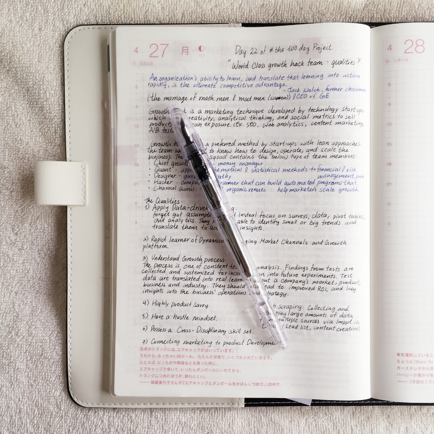 As a fountain pen beginner, my objective was Pilot’s Penmanship Fountain pen. It is a introductory fountain pen with an Extra Fine nib, designed for people who wants to practice their penmanship. It is especially useful for Asians because our writings requires more complicated strokes (especially Chinese). I love to use fountain pen in my Hobonichi, but the Fine nibs of Pilot Kakunos are still too large for Chinese handwriting in the small grids of my planner.