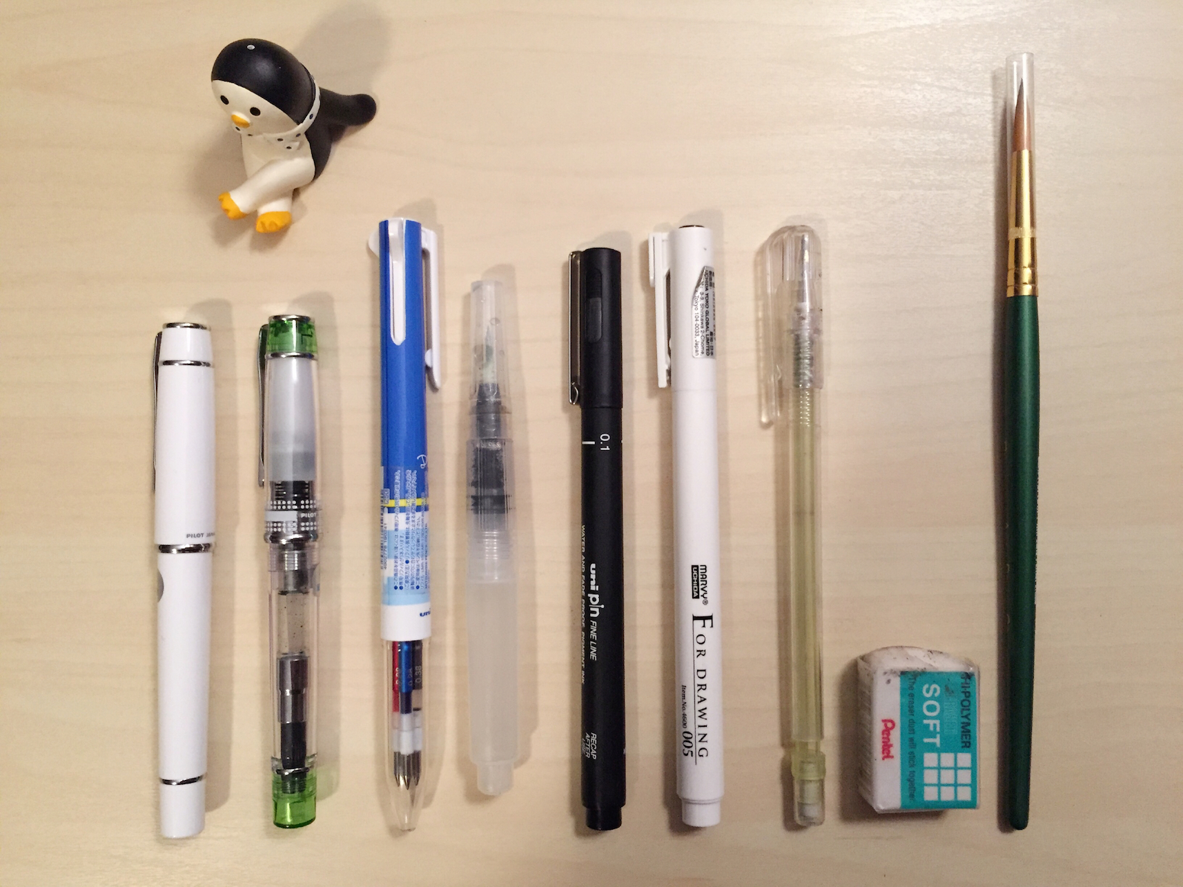 - Uni Pin fine-line waterproof pigment ink pen (interchangeable with the Sakura Micron waterproof pigment ink pen)