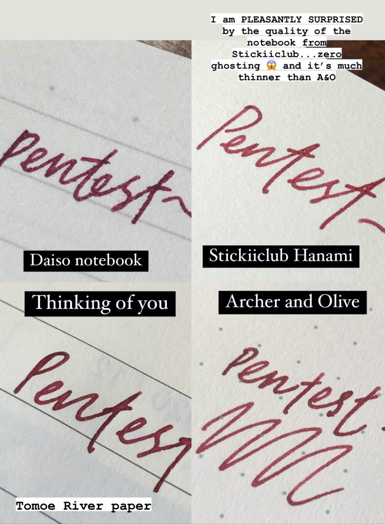 Oh my, oh my, just when I thought this box couldn’t get any better, I’m pleasantly surprised by the notebook that is included. The cover illustration is designed by @okashi_na_okashi and features two shiba inus having the time of their lives digging into a large bowl of Anmitsu…Deluxe! I have to admit, initially, I wasn’t expecting too much from Stickiiclub’s notebook. This type of product is not something they’ve delivered before, and I had imagined it to be a plain notebook that’s ruled and would suffer ghosting and bleed through from markers and juicy pens. Just for fun, I decided to do a pen test at the very back, and I was shocked by how it actually withstand my fountain pen inks! Not only does the ink marks not feather, there was zero ghosting and bleed through. After I picked up my jaws from the ground, I went on to Stickiiclub’s Instagram to investigate what the paper material is. They didn’t reveal anything special, just that it is 120 gsm plain paper.