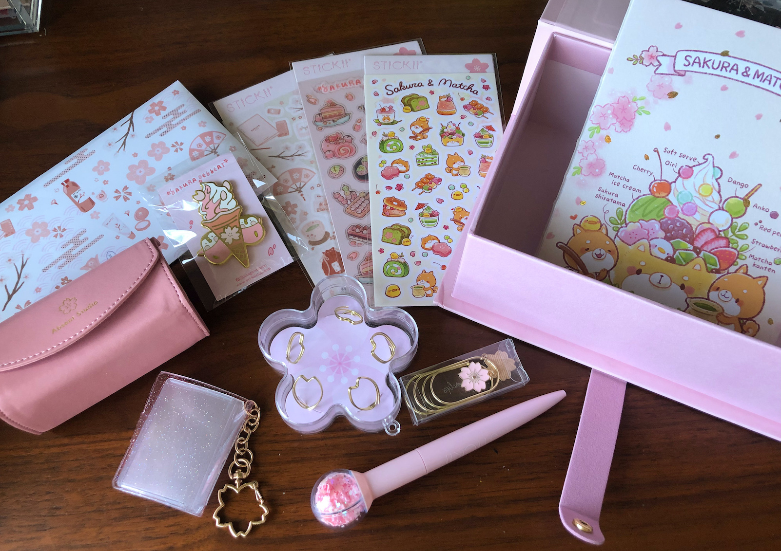 Finally, the Hanami Box also included some other little knick knacks like a plastic sakura globe pen, a tiny photo album keychain, paper clips, enamel pins, and memo holders. I foresee myself re-purposing the box itself as a place for stationery storage…or even the capsule container for monthly stationery items I want to rotate in and out of my stash!