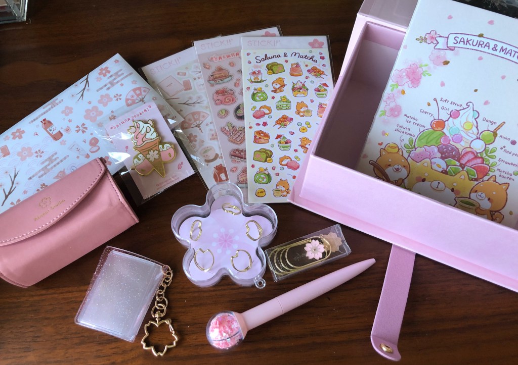 The Hanami Box that came in the mail from Stickiiclub reminded me of a bento box filled with goodies that you can snack on, and in this case, it is a case of stationery goodies! The moment I opened the box, my heart flutters at the sight of all things pink. I’m more of a “green” girl but during sakura season, I can’t helped but be enamored by everything pink.