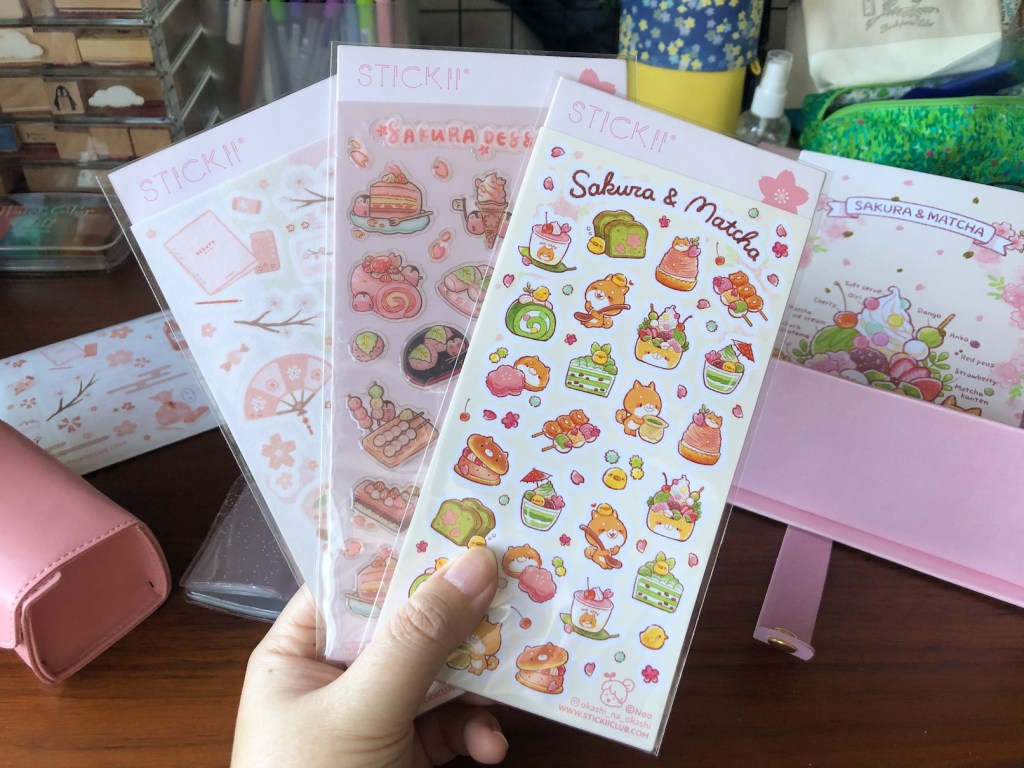 The Hanami Box contains three sticker sheets, which is the staple product from Stickiiclub (they are known for their sticker pack in the first place.) These three sheets features cherry blossoms, Japanese desserts, and cute animals frolicking alongside matcha rolls and sakura mochi pastries. Although I probably won’t use them in the Hobonichi, but I’m not too mad about one of the sheet being a jelly/raised texture, because I can use it to decorate cards and my junk journal inserts. The other stickers are fair game to my main journal, my planners, and other notebooks because of the thin material.