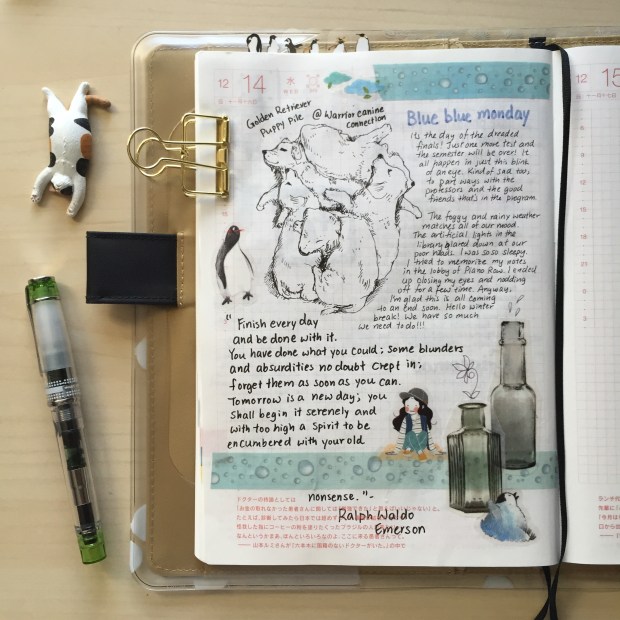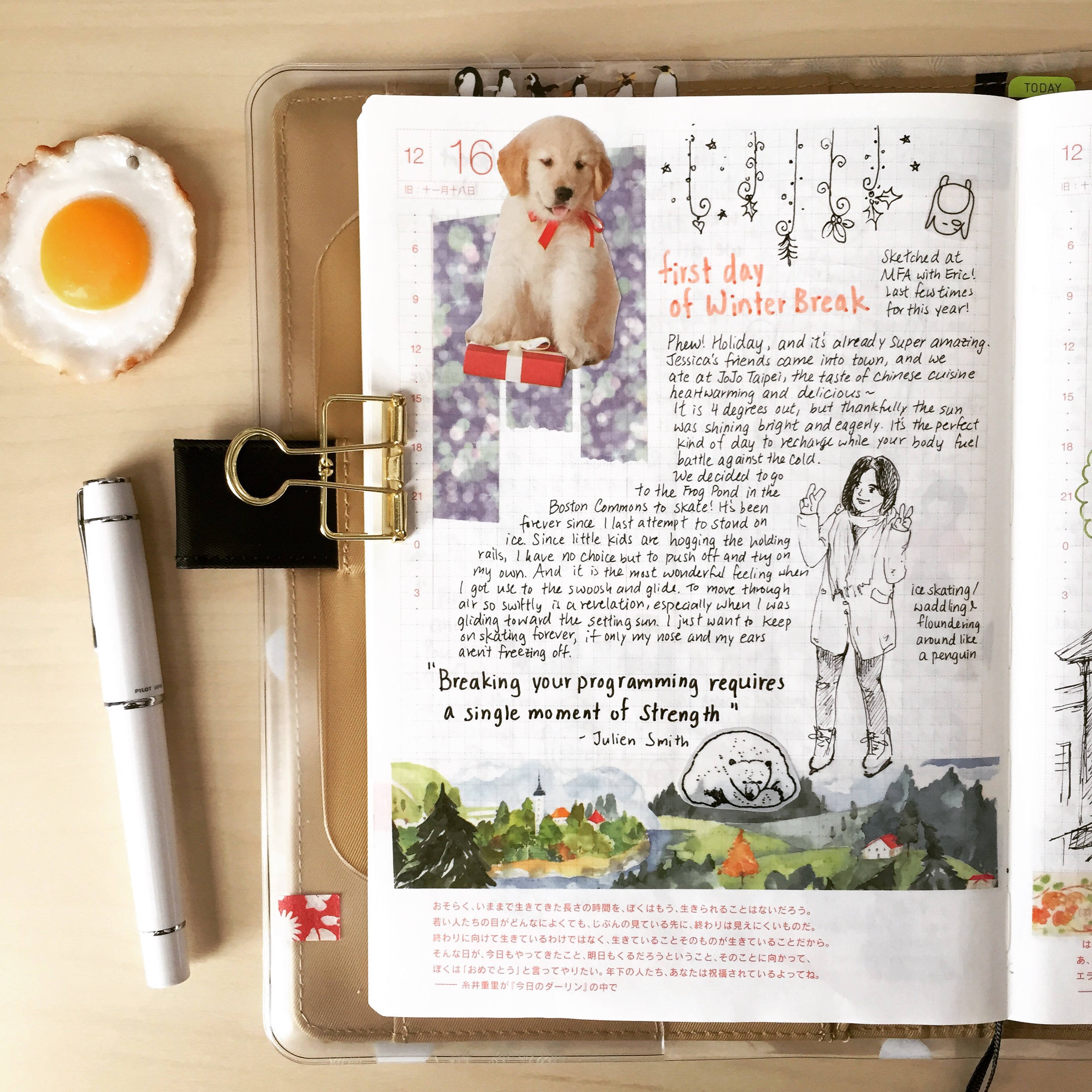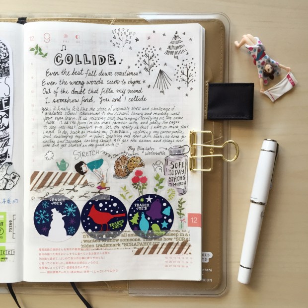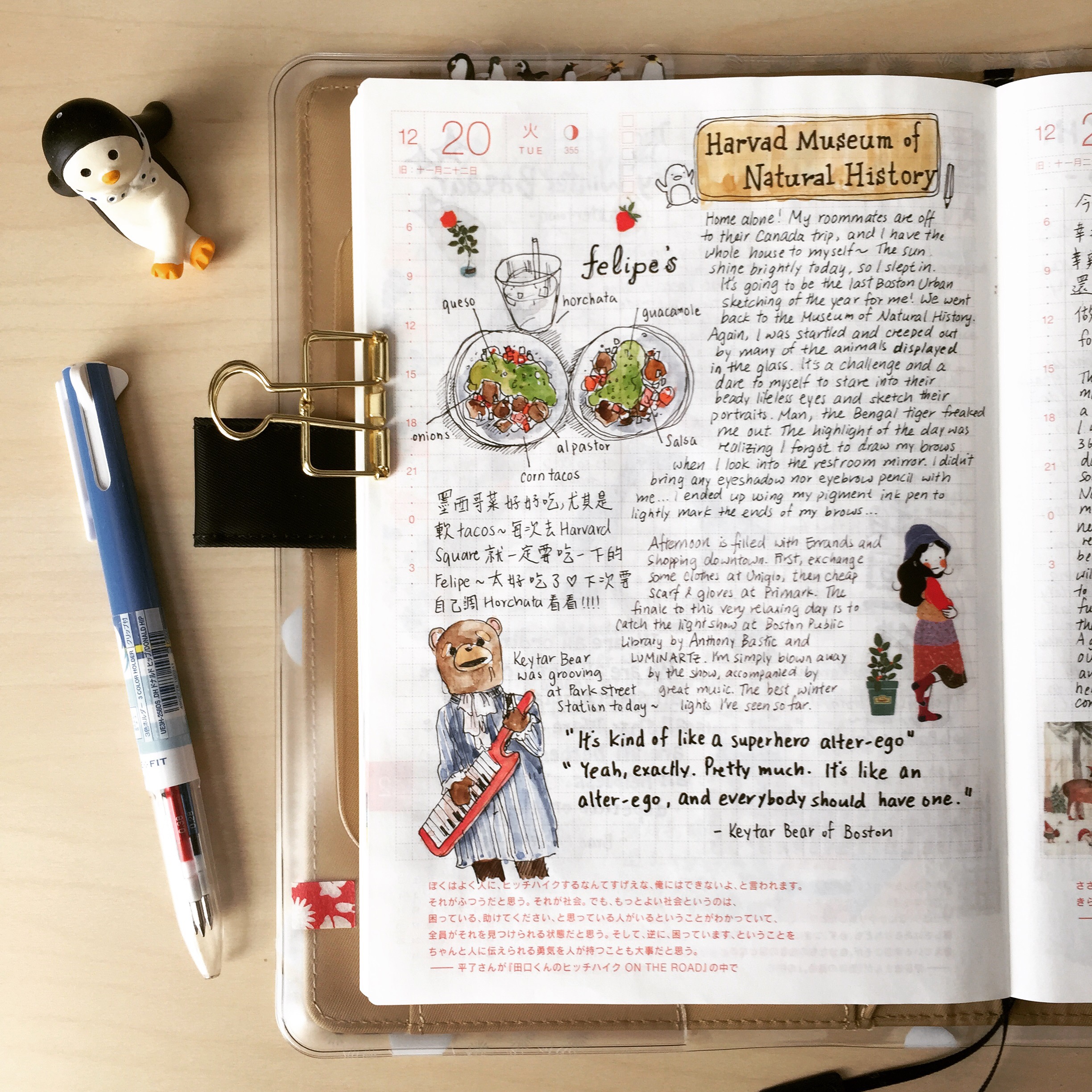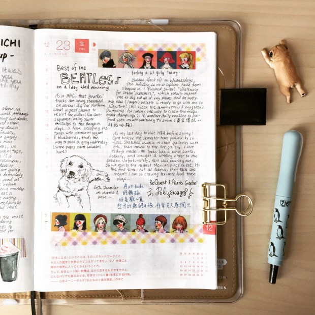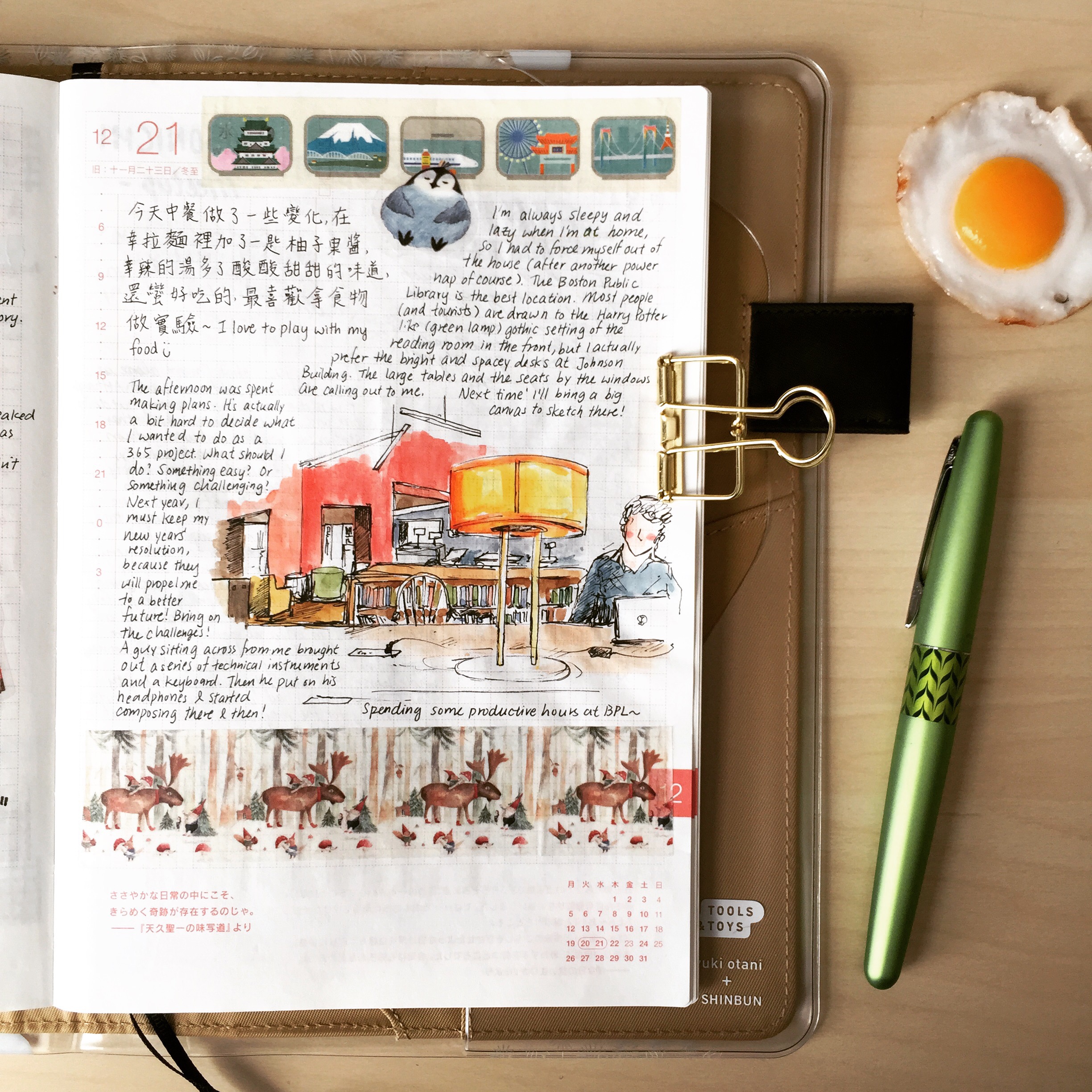 I’m so happy they included the green string to go with the Camel color (just like the Red string that pops on a black TN). They included extra rubber strings for the purpose of securing multiple inserts and accessories. I’ll only be using one in this case. Each new Traveler’s notebook set also comes with a blank insert (not shown in picture). I’ll be using that as my portable sketchbook when I finish with my latest insert. Continue reading