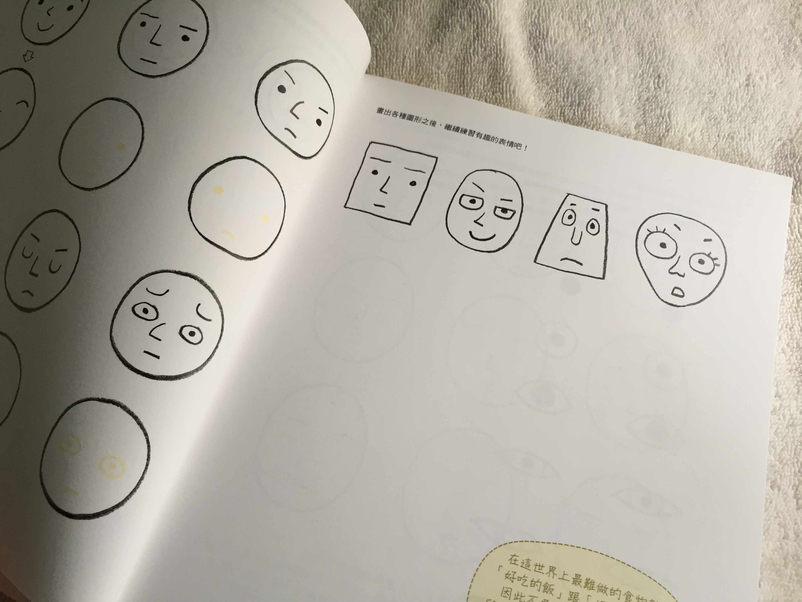 Starting with the basics again, I refer to the second lesson from the doodle book that teaches how to draw human portraits – Shapes and faces. Emotion and facial features can be a daunting thing to capture when drawing portraits. So the book starts on a easy-going level of simply creating comic-like expressions on different shapes.